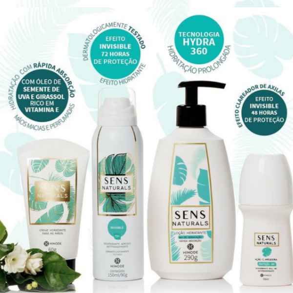Sinta a proteção, sinta os cuidado do creme hidratante Sens. Suas mãos mais protegidas e hidratadas, com rápida absorção e com Óleo de uva e girassol rico em vitamina E. Linha Sens deixe a sua rotina de cuidados corporais ainda mais agradável. Fórmula poderosas, texturas deliciosas e perfumação intensa. Sinta a delicadeza.